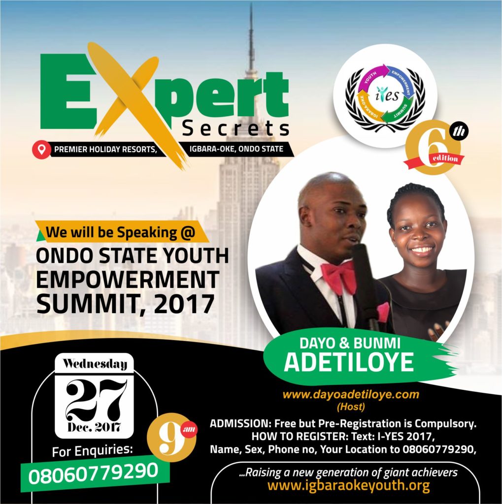 Special Invitation To the 6th Edition of My Yearly Youth Summit in Ondo State, Nigeria on 27th December 2017.