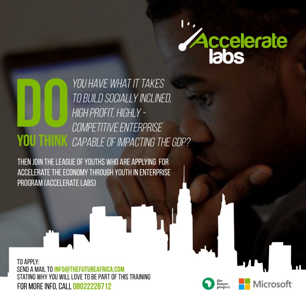 Apply for The Future Project Microsoft Accelerate LABS Program 2017 for Start ups in Nigeria closes on 24 August 2017