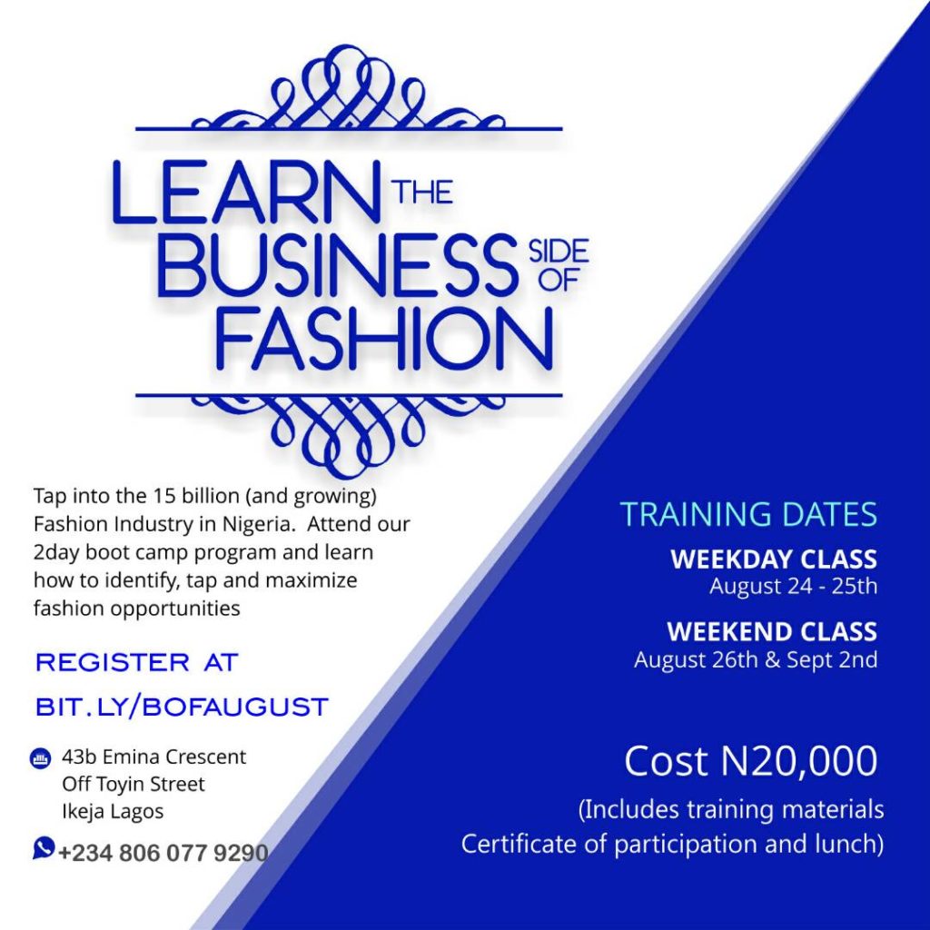 TRAINING: Become a Fashion Millionaire by Learning the Business Side of Fashion for Just 20k in 2days in Nigeria